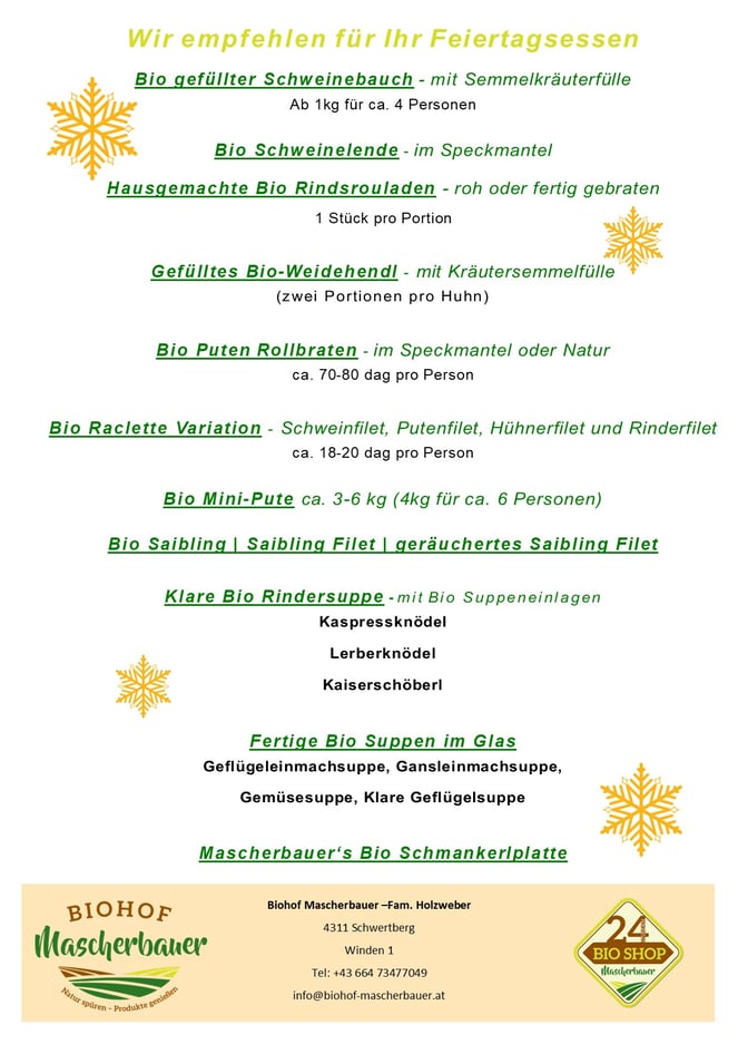 Kalbsbratwürstel: Abholung nur am 24.12 möglich